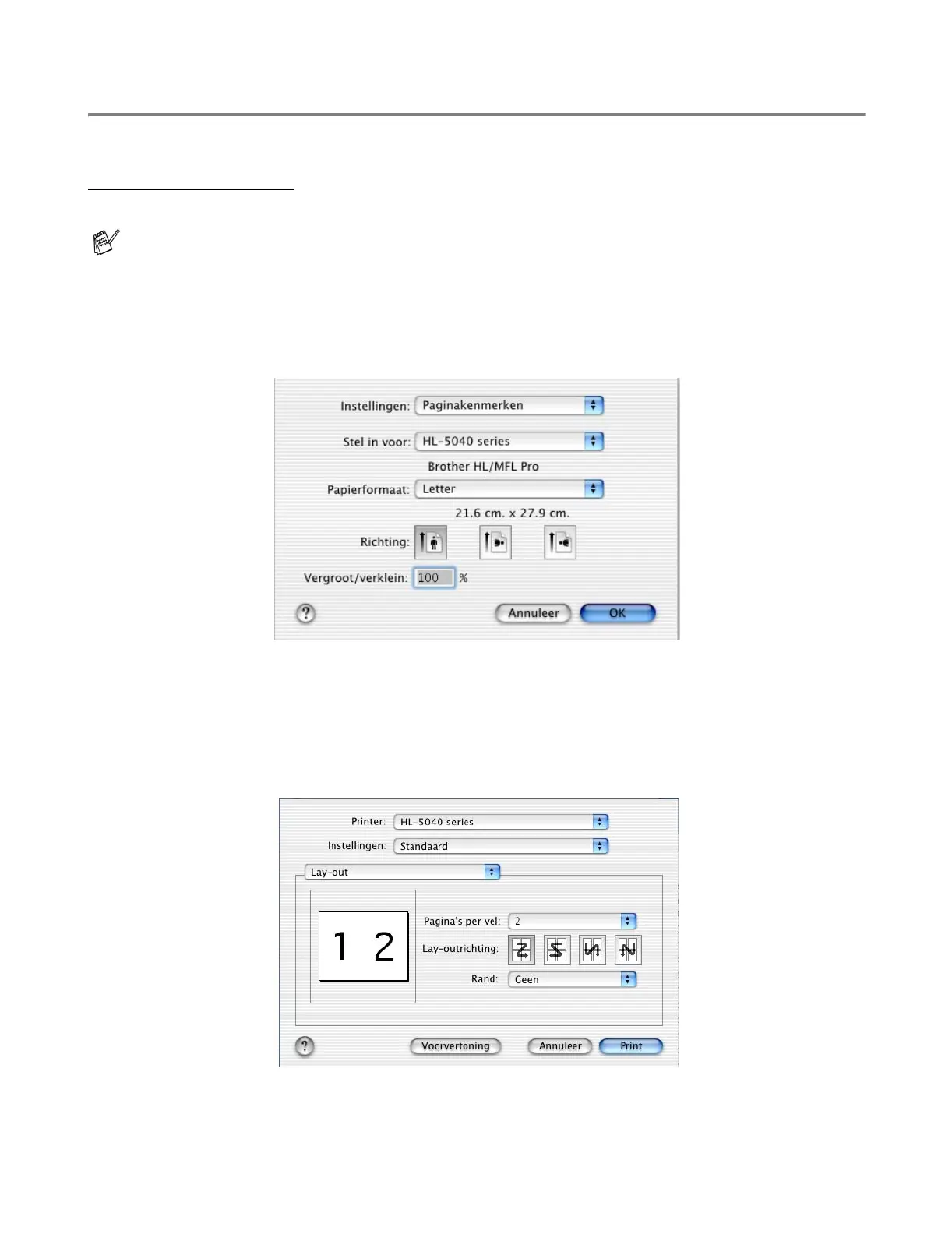 U kunt instellingen maken voor het Papierformaat, de Richting en Vergroot/verklein.