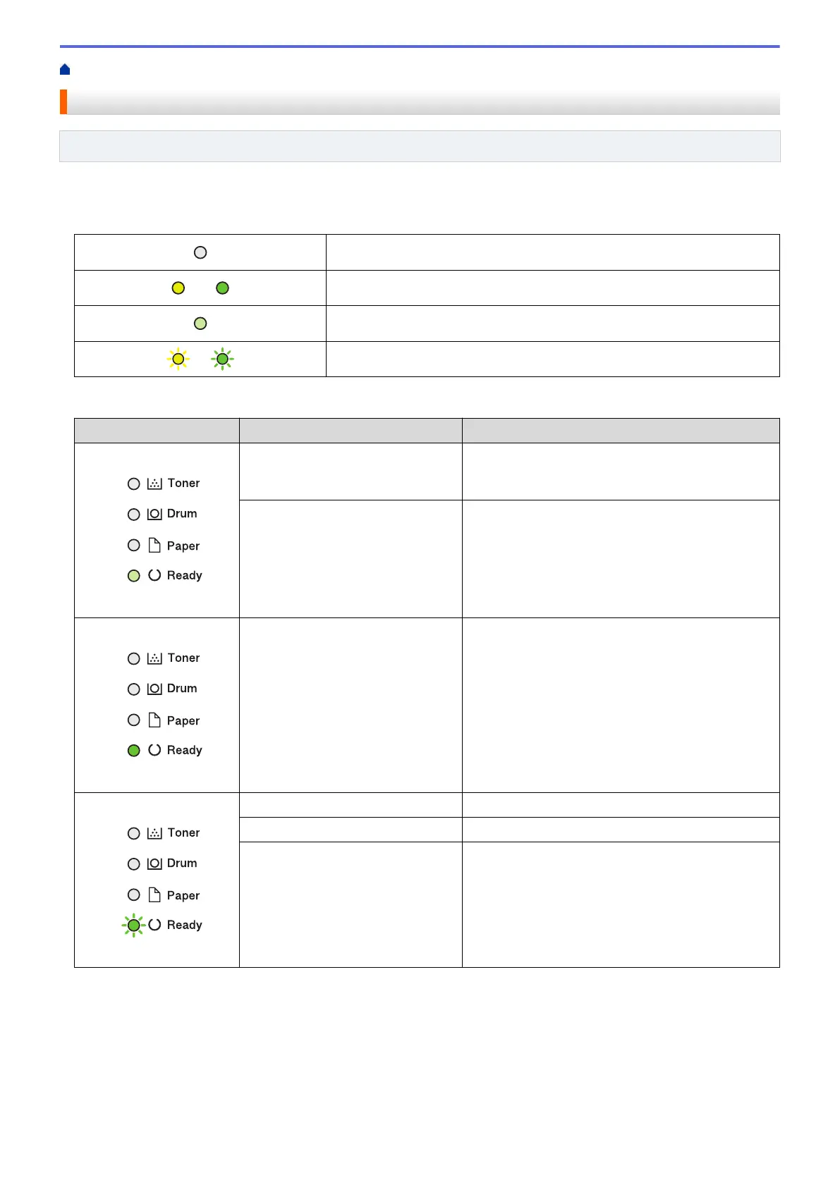 主页 > Brother 设备简介 > 指示灯模式和指示 (HL-B2000D)