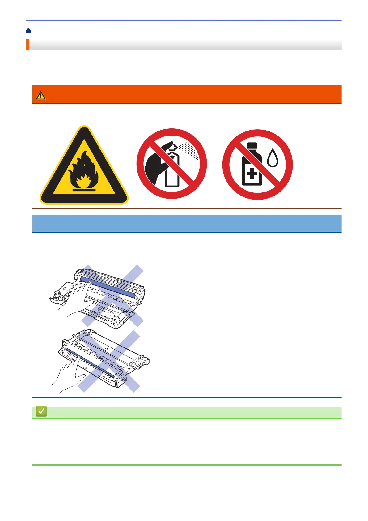 当您更换墨粉盒或硒鼓单元时,请确保清洁设备的内部。如果打印出的页面被墨粉弄脏,请使用柔软的无绒干抹布