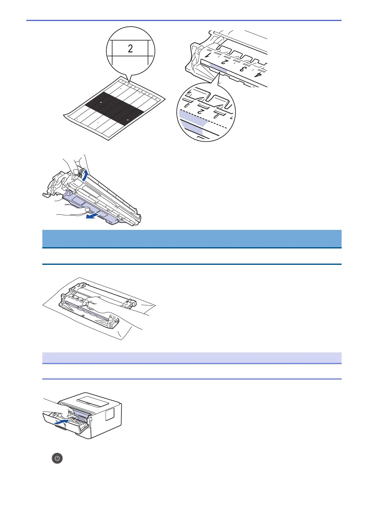 8. 如示意图所示,推按阴影部分的同时旋转硒鼓单元端部的转轮,以找到印记或异物。