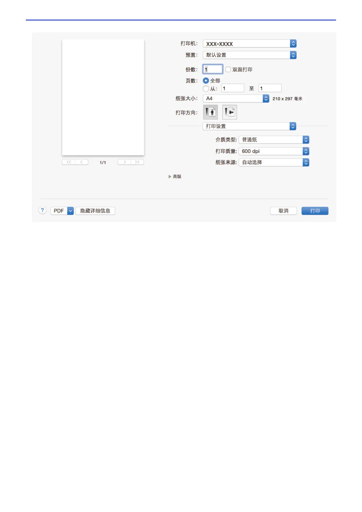 选择所需的打印分辨率。因为打印质量与速度相关,质量越高,打印文档所需的时间就越长。