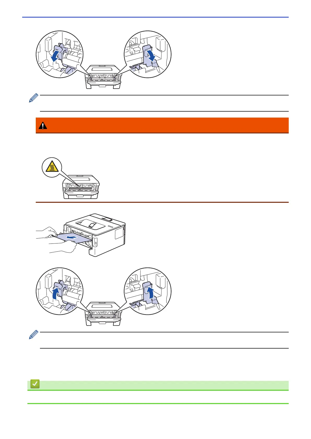 7. Pull the blue tabs at the left and right sides towards you to release the fuser cover.