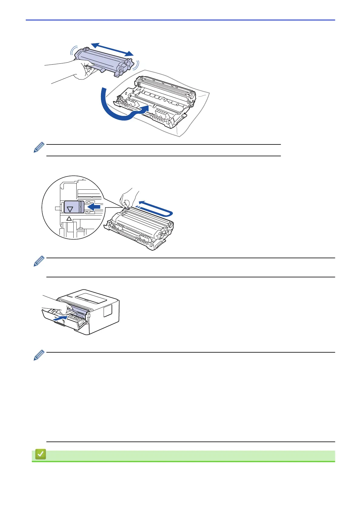 7. Hold the toner cartridge by the handle and shake it from left to right several times, as shown. Then push it