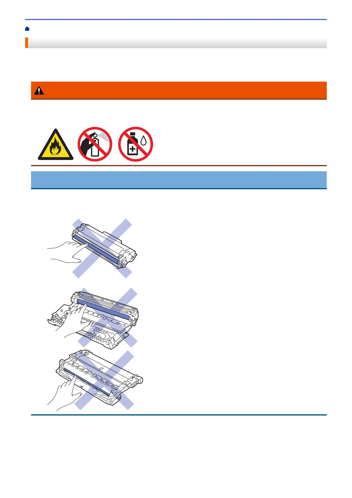ammonia to clean the inside or outside of the product. Doing so could cause a fire. Instead, use only a dry,