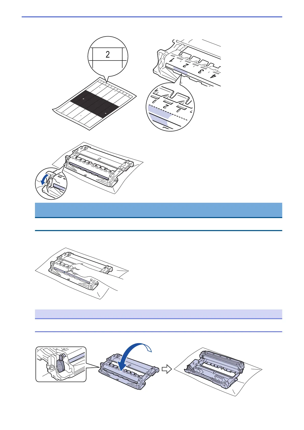 9. Turn the drum unit edge towards you while looking at the drum surface to find the mark.