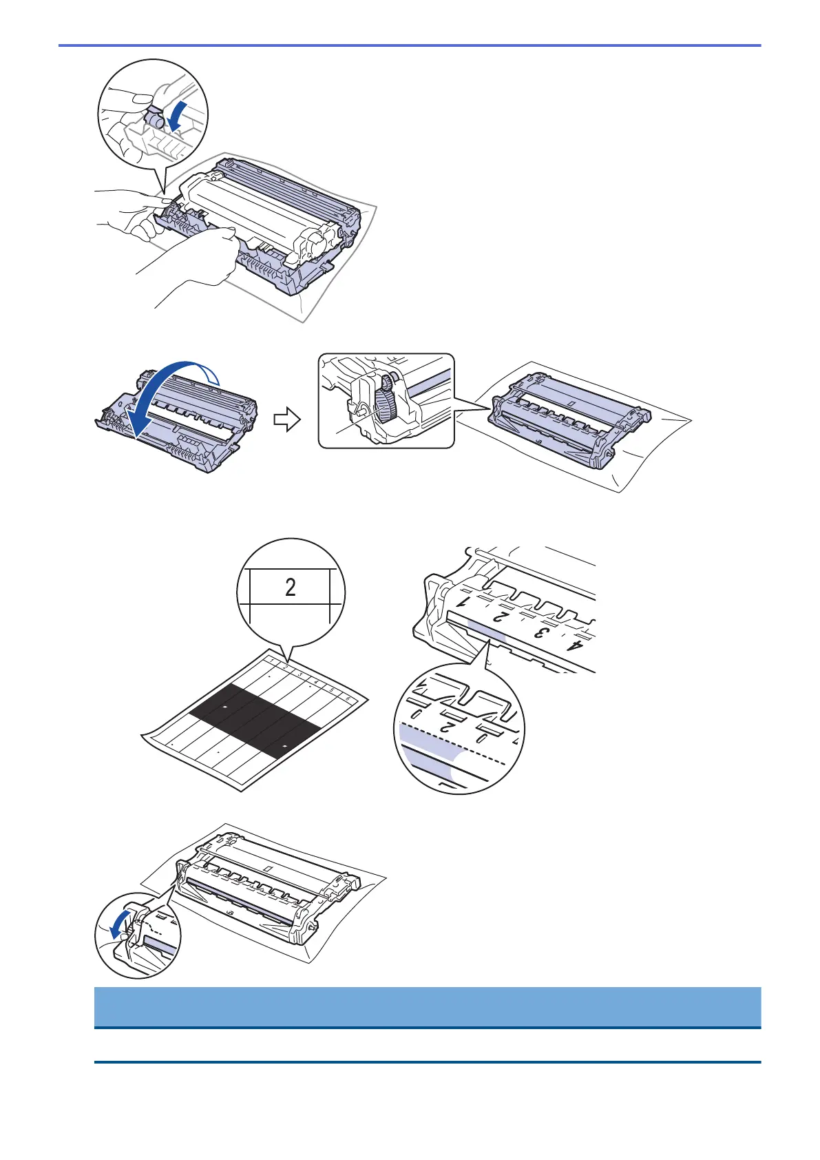 To avoid print quality problems, DO NOT touch the surface of the drum unit, only the wheel on the end.