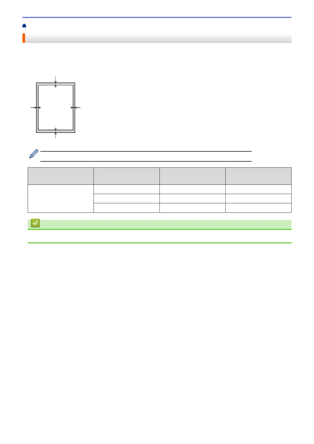 The measurements in the table below show maximum unprintable areas from the edges of the most commonly