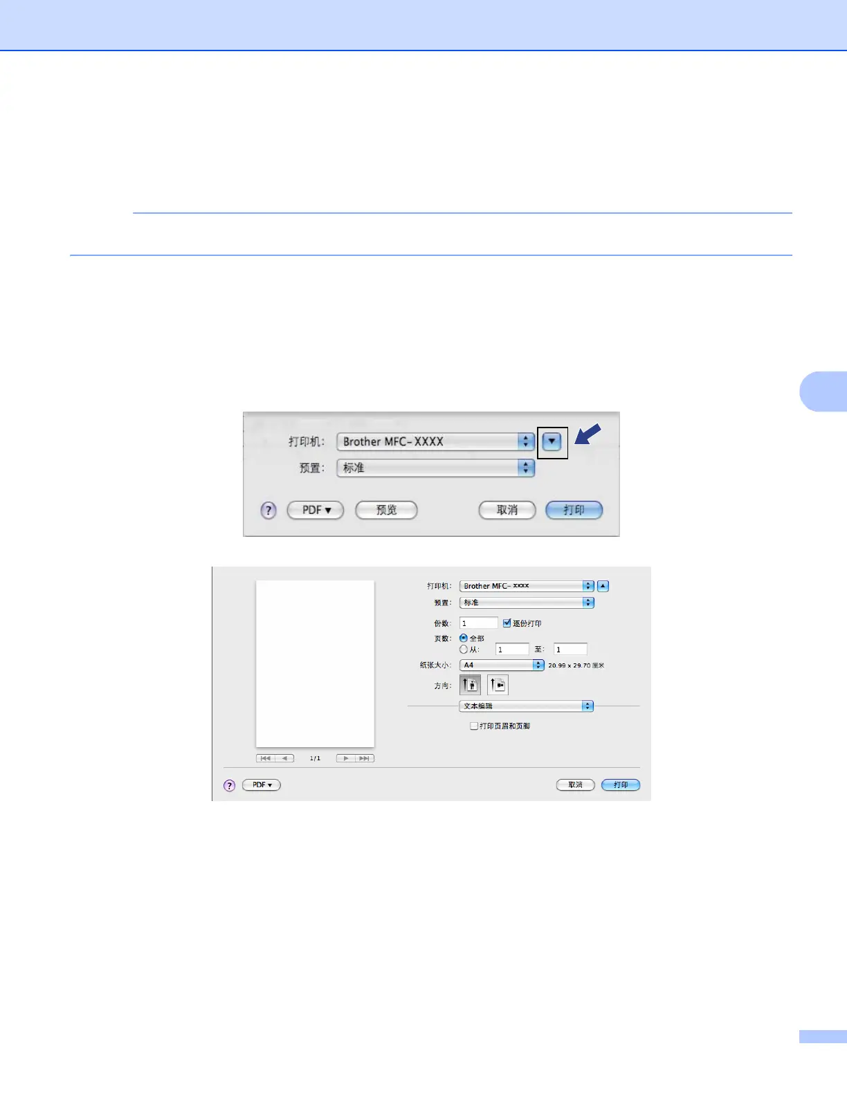 如需设置更多页面设置选项,请点击打印机下拉菜单旁边的提示三角。