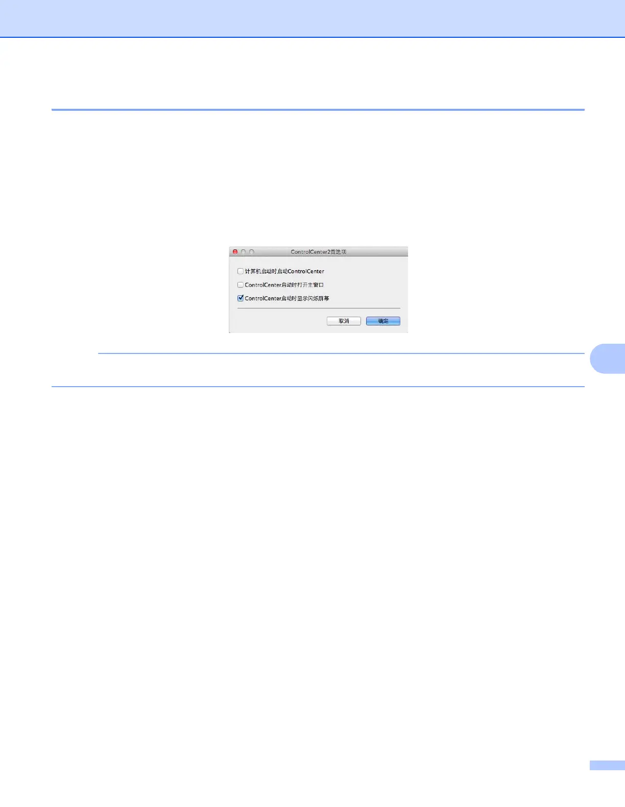 如果您不想每次启动 Macintosh 时都自动运行 ControlCenter2,请进行以下操作:
