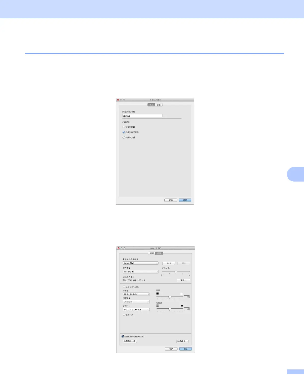 设置电子邮件应用程序文件类型分辨率扫描类型文档尺寸连续扫描显示扫描