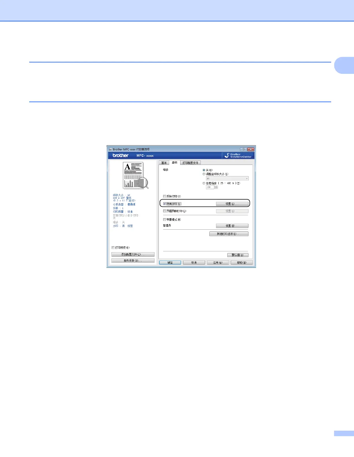 件。 请选中使用水印复选框,然后点击设置 ... 按钮。