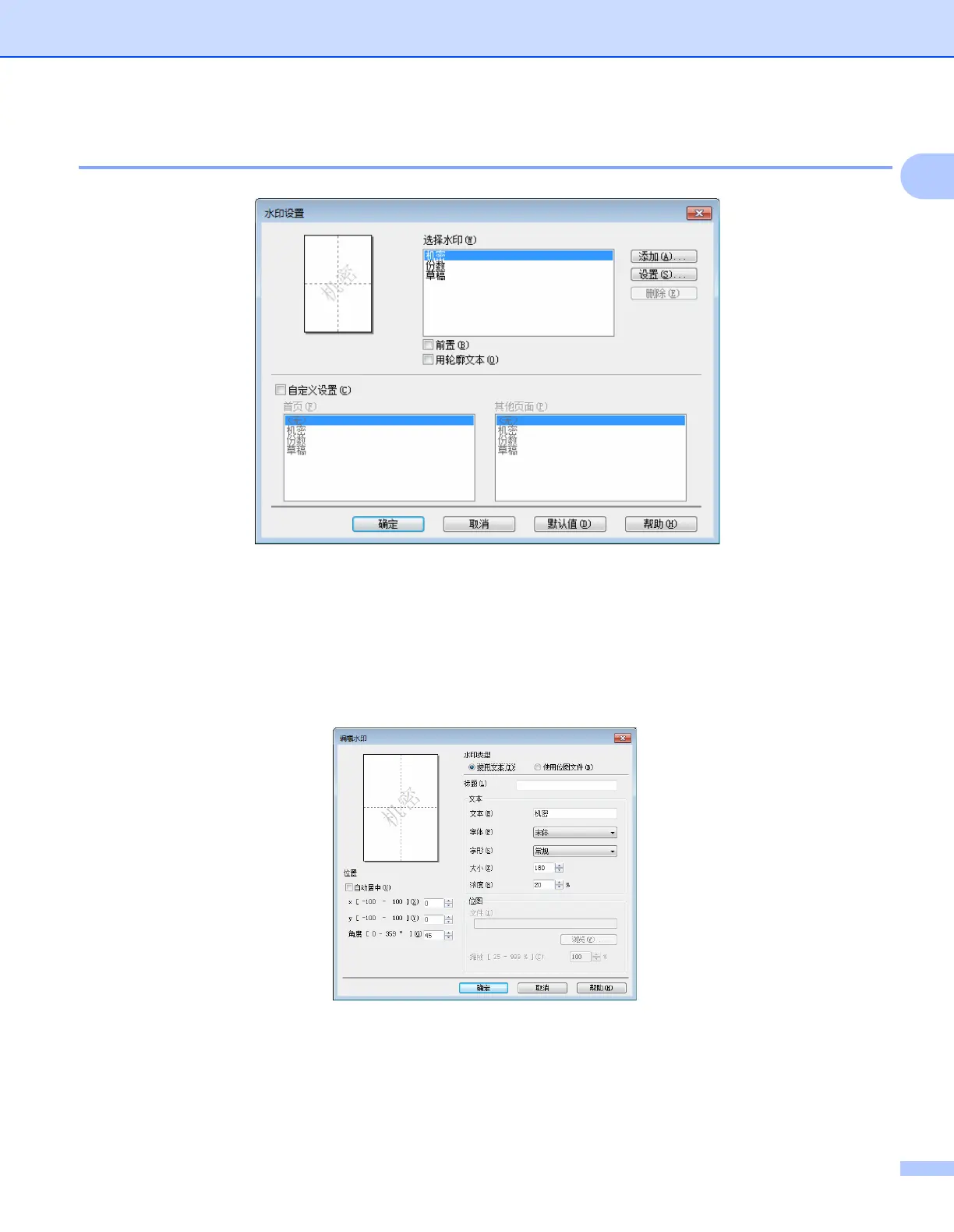 选择水印后,点击设置 ... 按钮即可更改水印的大小及其在页面上的位置。