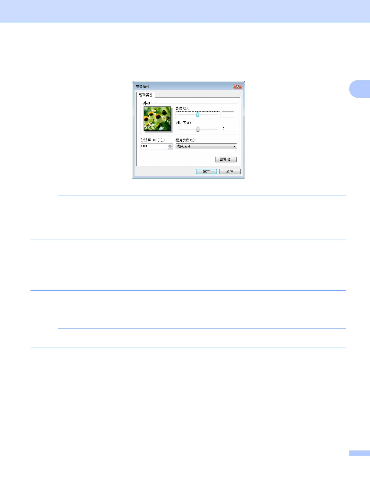 比度、分辨率 (DPI) 和照片类型。 更改设置后,点击确定。
