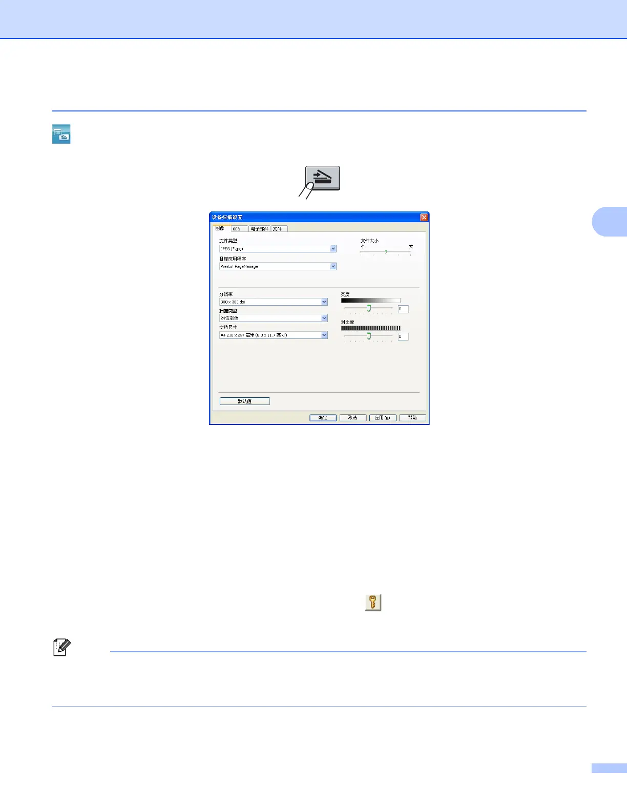 用于配置通过按 Brother 设备扫描键进行的扫描到图像的设置。