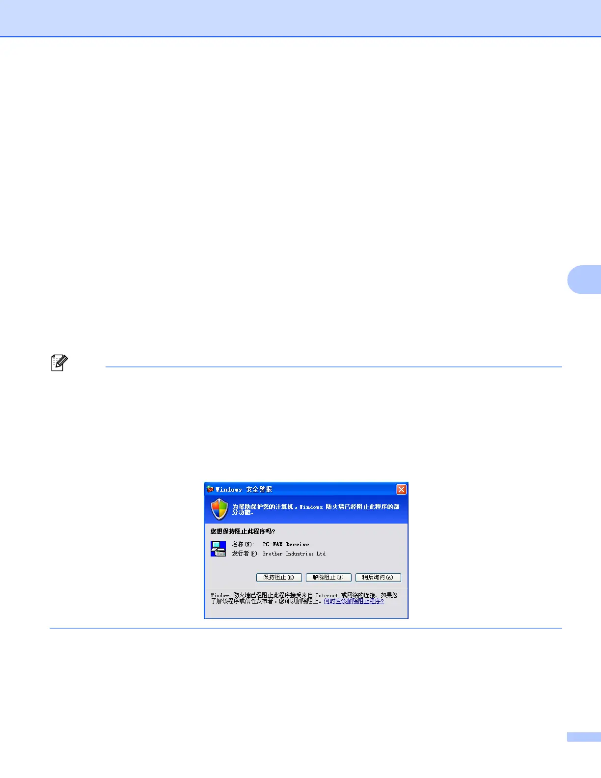 要启动 PC-FAX 接收功能,必须解除阻止此程序。