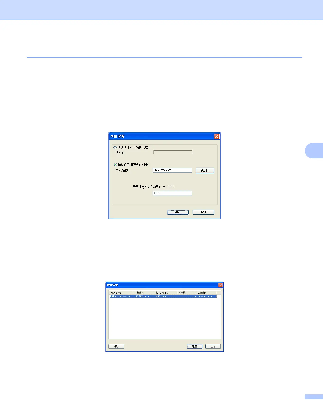 在节点名称栏中输入设备的节点名称,或点击浏览按钮从列表中选择要使用的 Brother