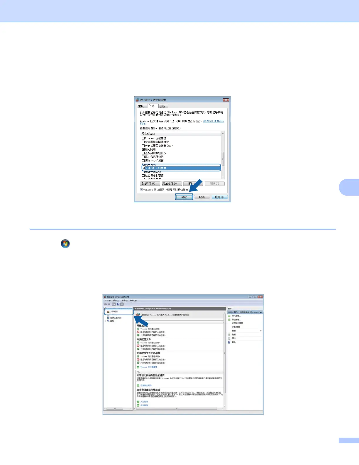 j 如果依然存在网络扫描或网络打印等的网络连接问题,请选中例外选项卡中的文件和打