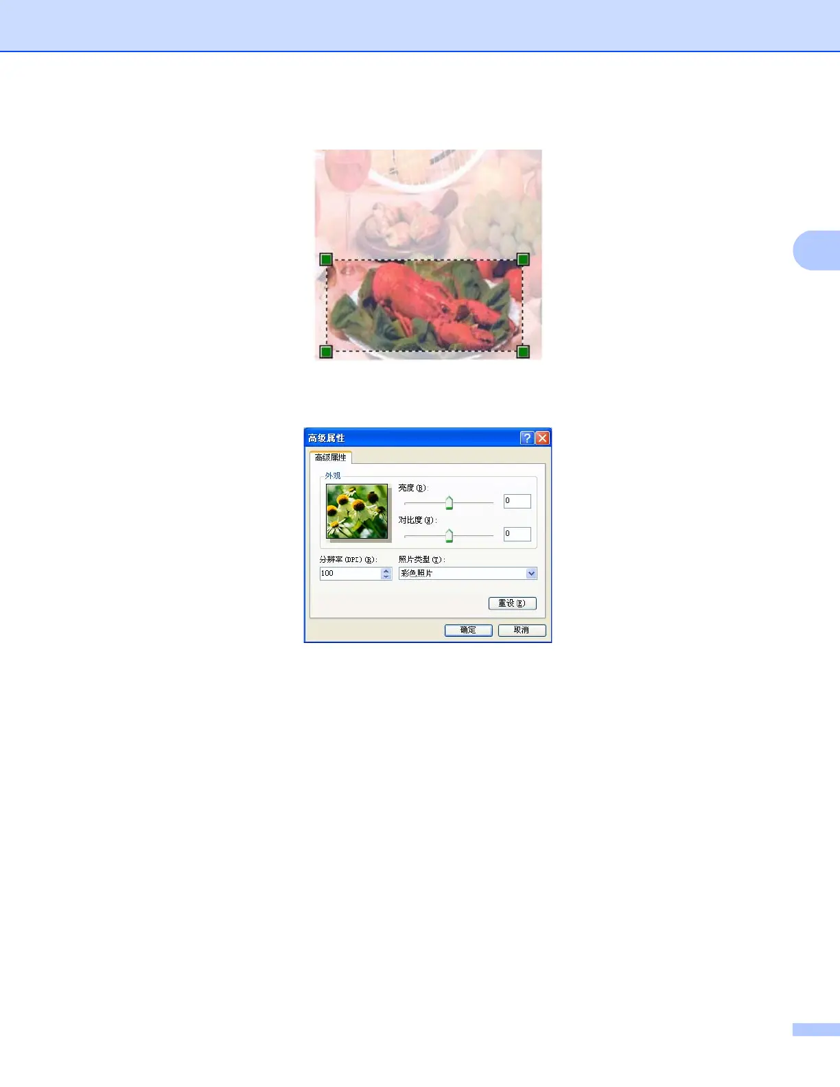 f 若需进行高级设置,请点击调整已扫描照片的质量 (3) 可在高级属性中设置亮度