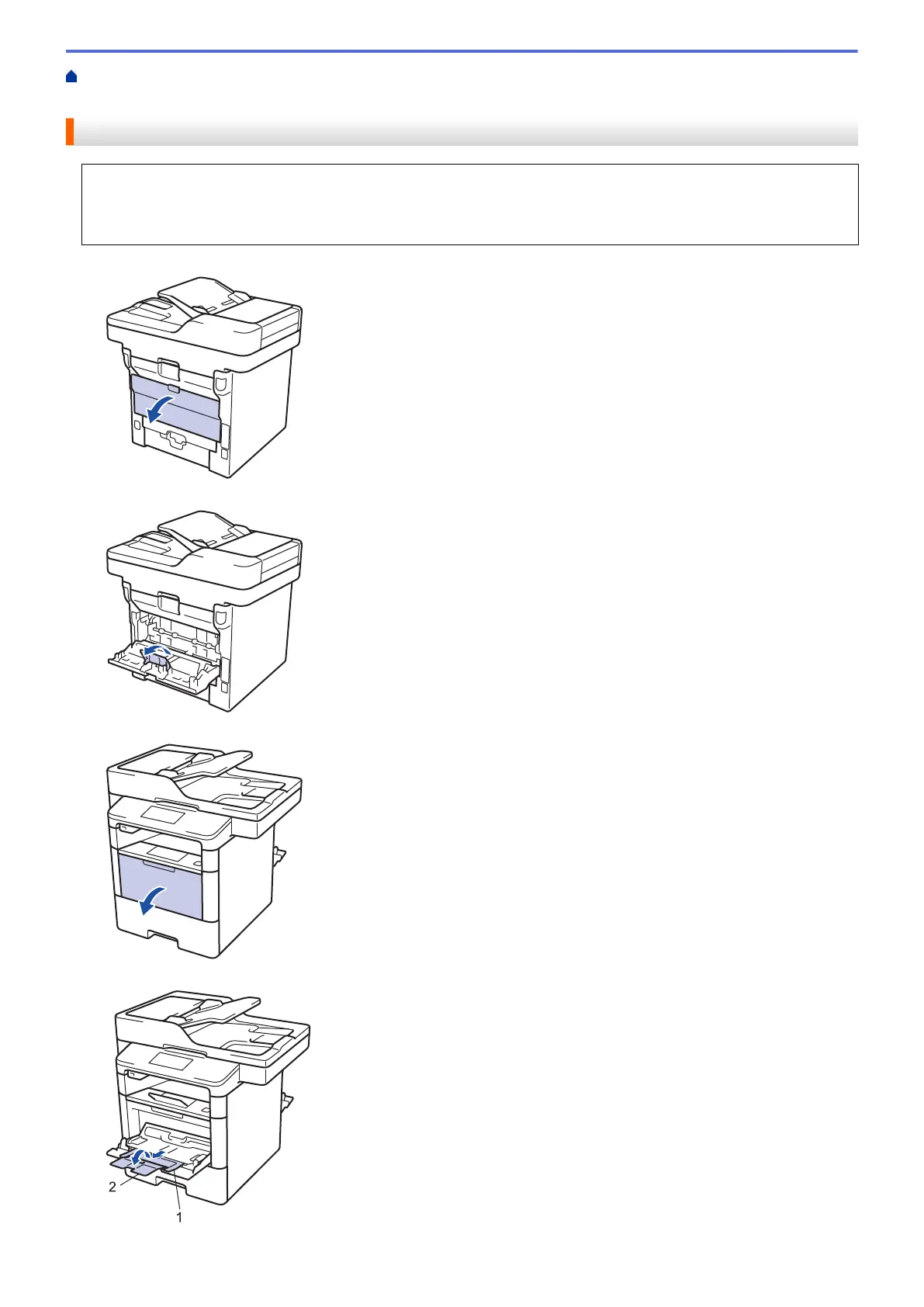 打开后盖 (后出纸托板) 时,设备内将形成一个从多功能进纸板通向设备背面的直通式送纸通道。若要在厚纸