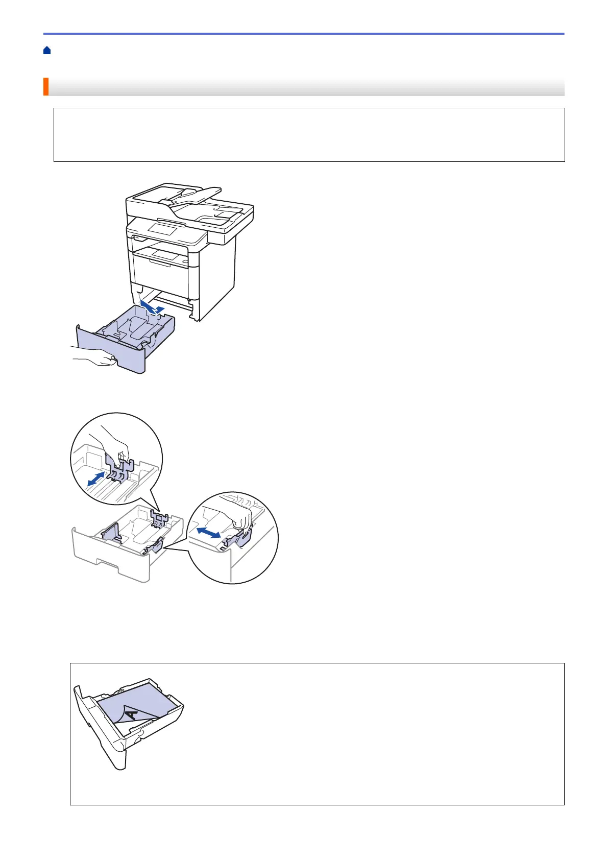 • 在纸盒中装入其他尺寸和类型的纸张时,必须同时更改设备中或计算机上的纸张尺寸和纸张类型设置。