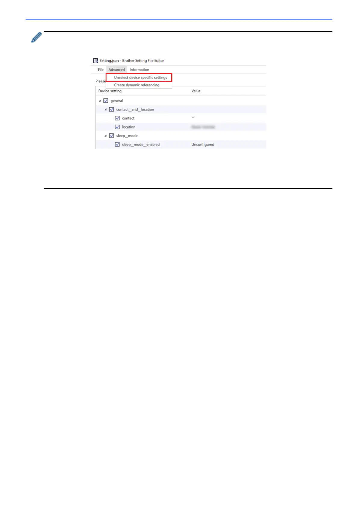 • Remove all device-specific settings at once by selecting Unselect device specific settings in the