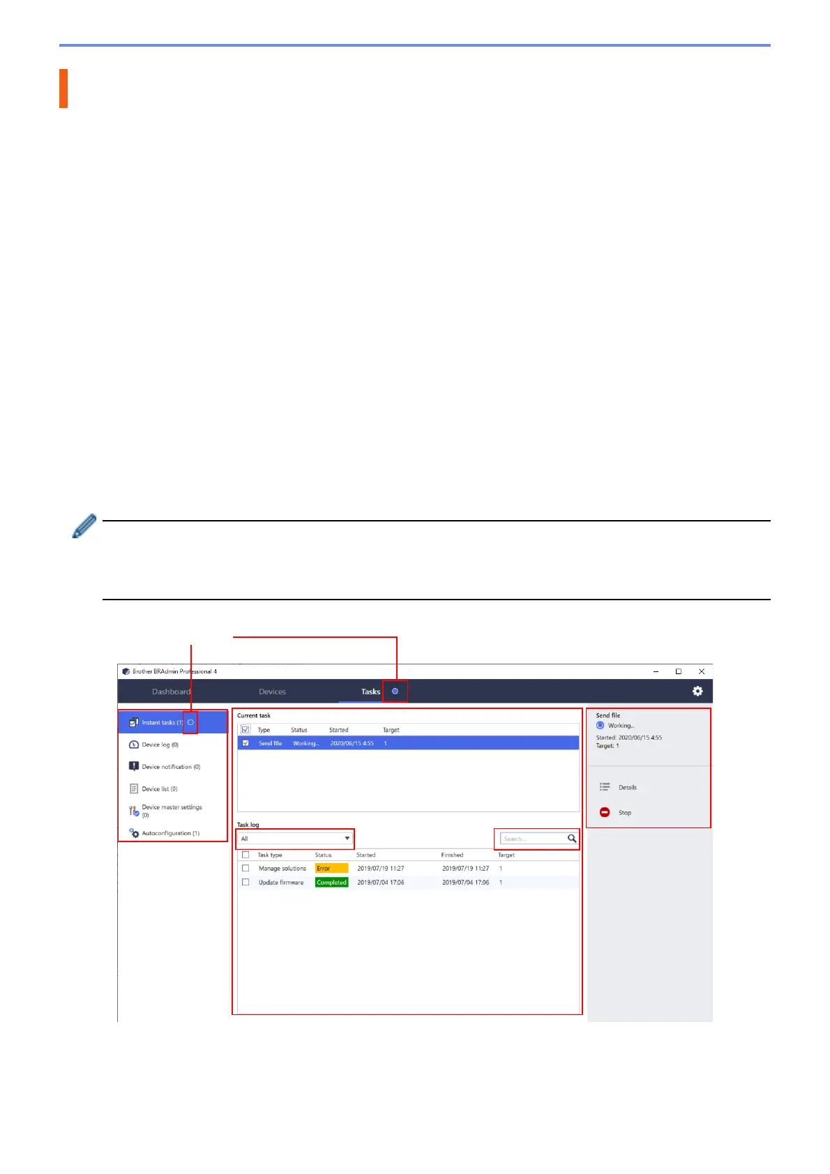 • To filter the tasks by status, select the status from the Task log drop-down list.