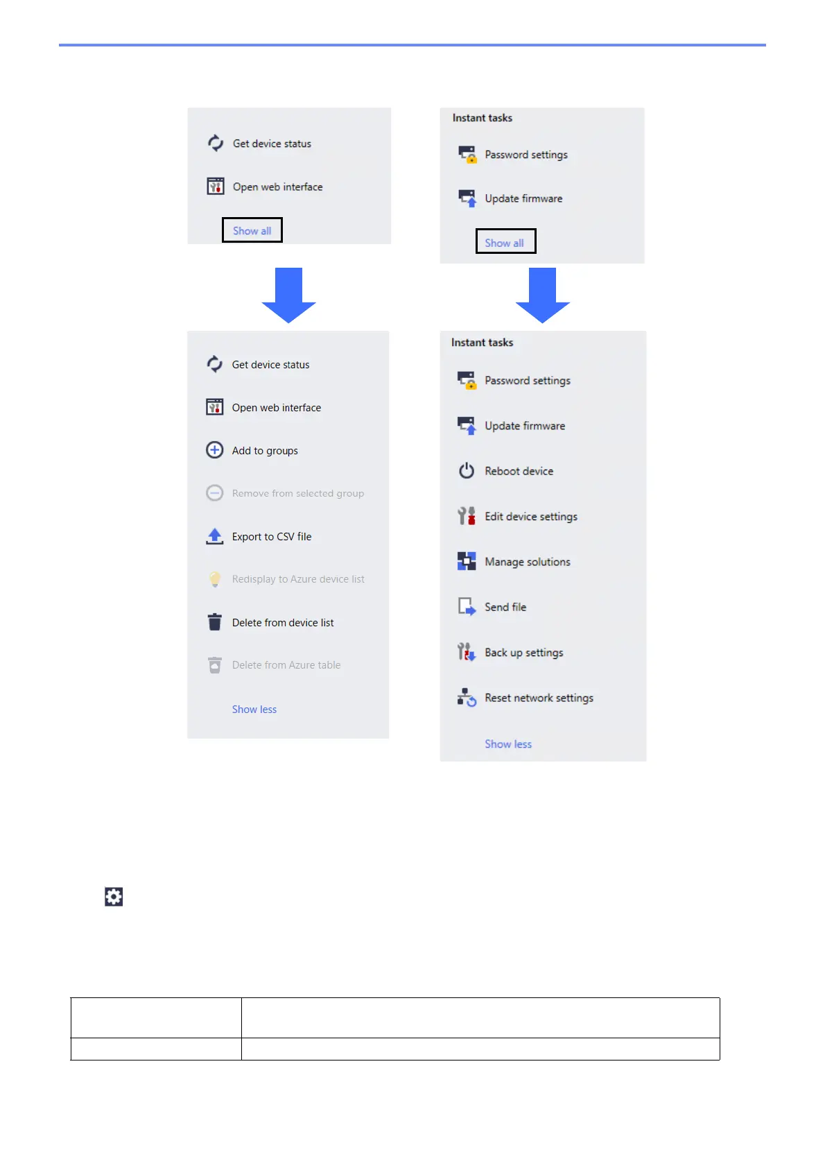 To expand the list of available actions or tasks in the right pane, click Show all.