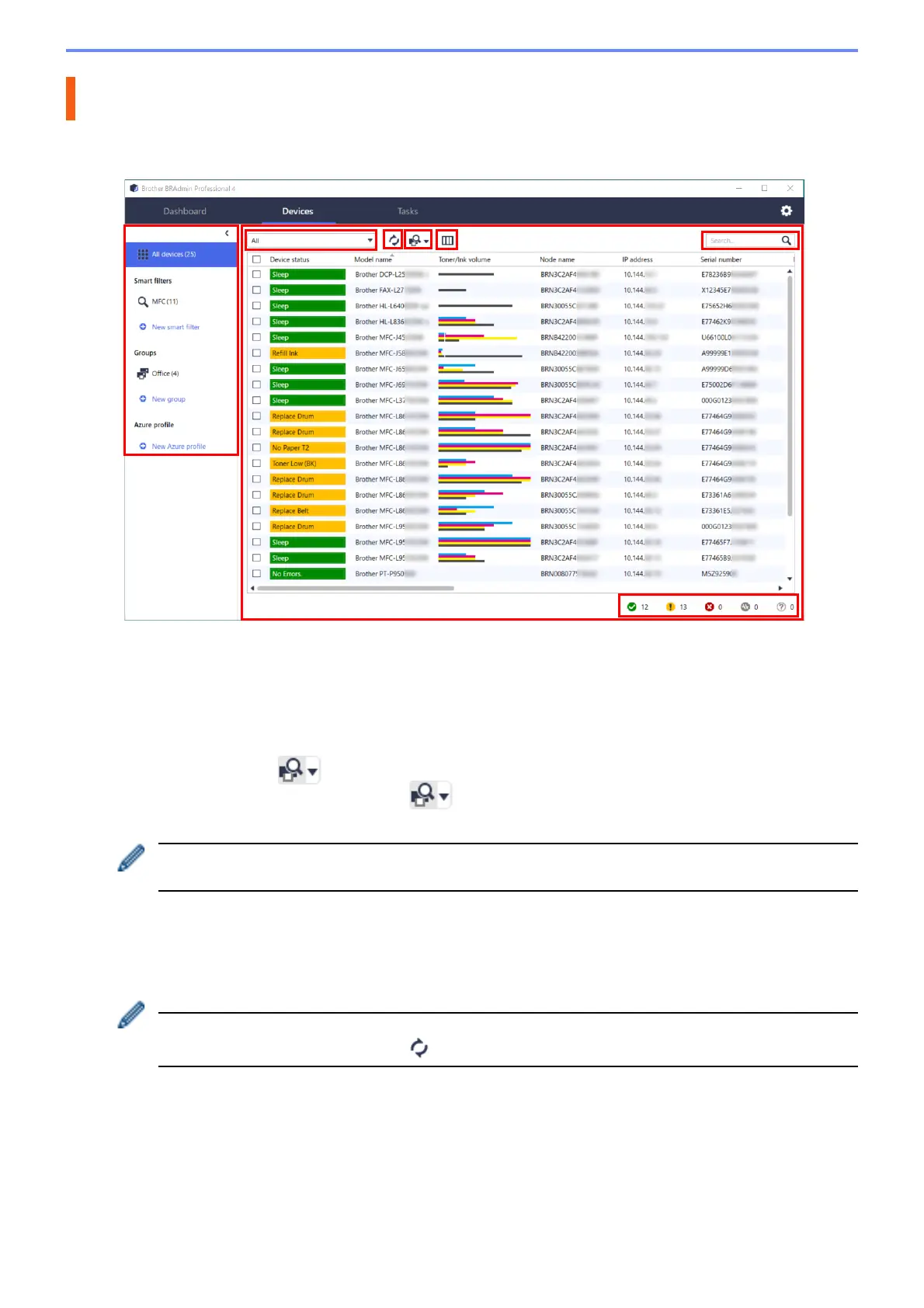 BRAdmin Professional 4 updates the device list upon startup. If you cannot find your target device in the list,