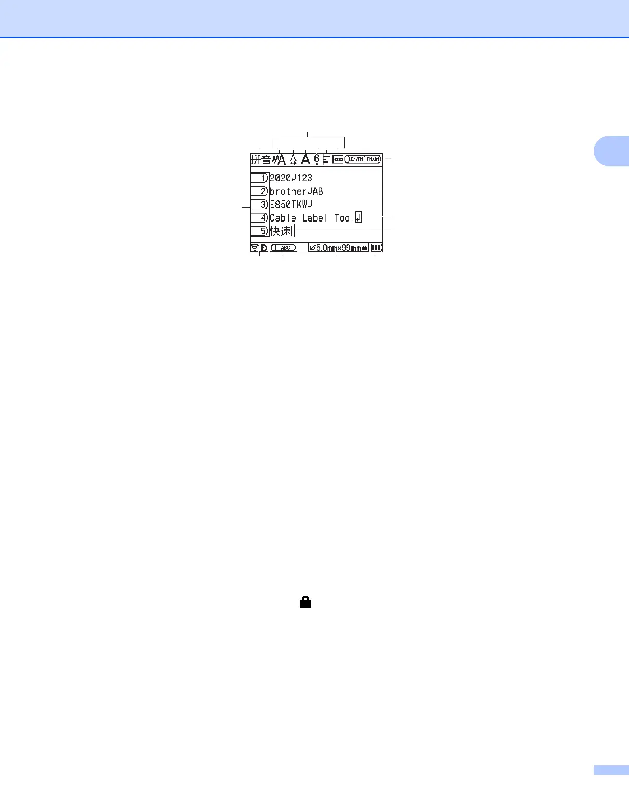 表示当前字符尺寸 (A)、字宽 (B)、修饰 (C)、 6/9 标记 (D) 、对齐 (E) 和竖版 (F) 设置。