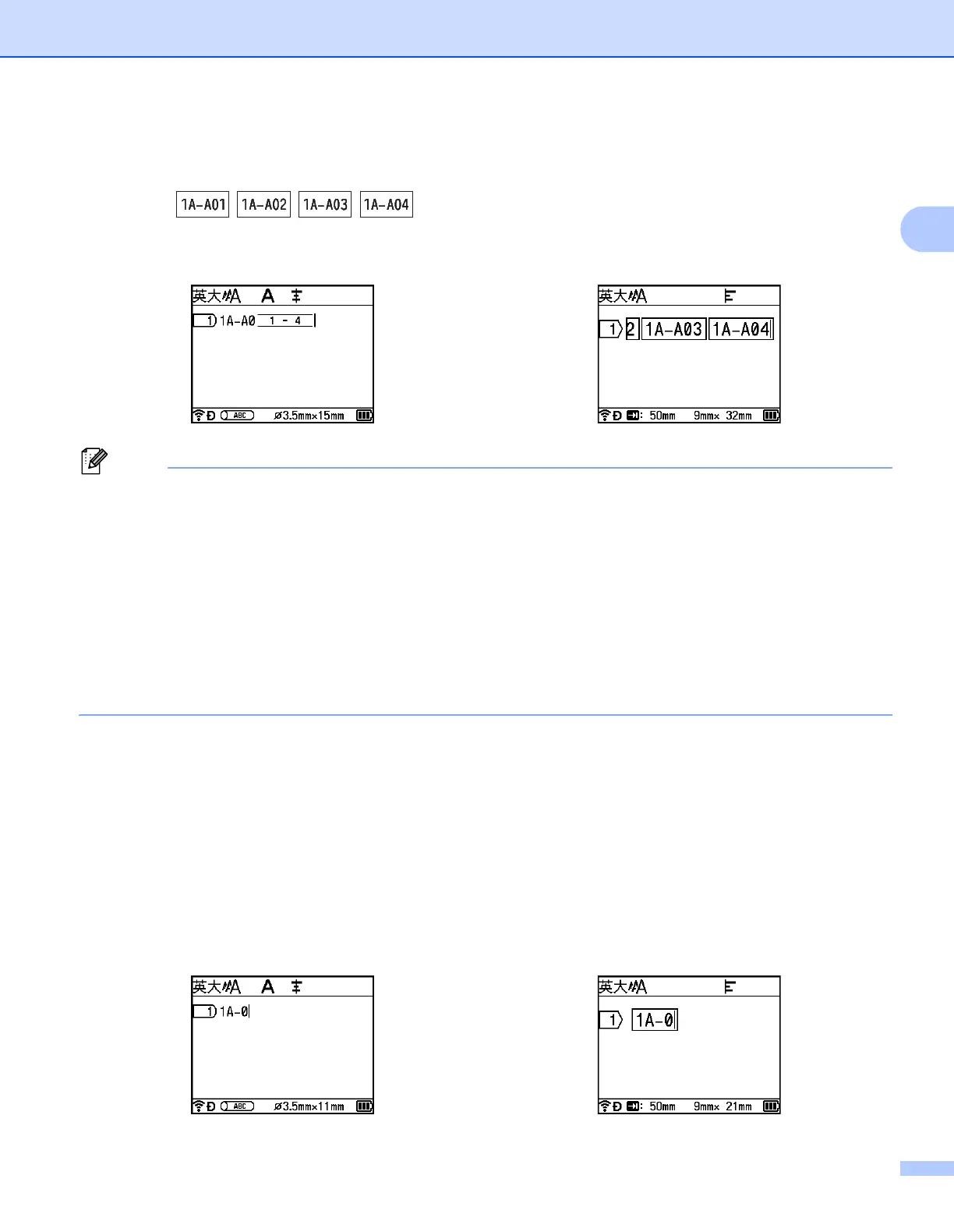 • 使用标签时,虽然 P-touch 打印机会在完成序号设置后创建多页标签,但您也可以仅选择