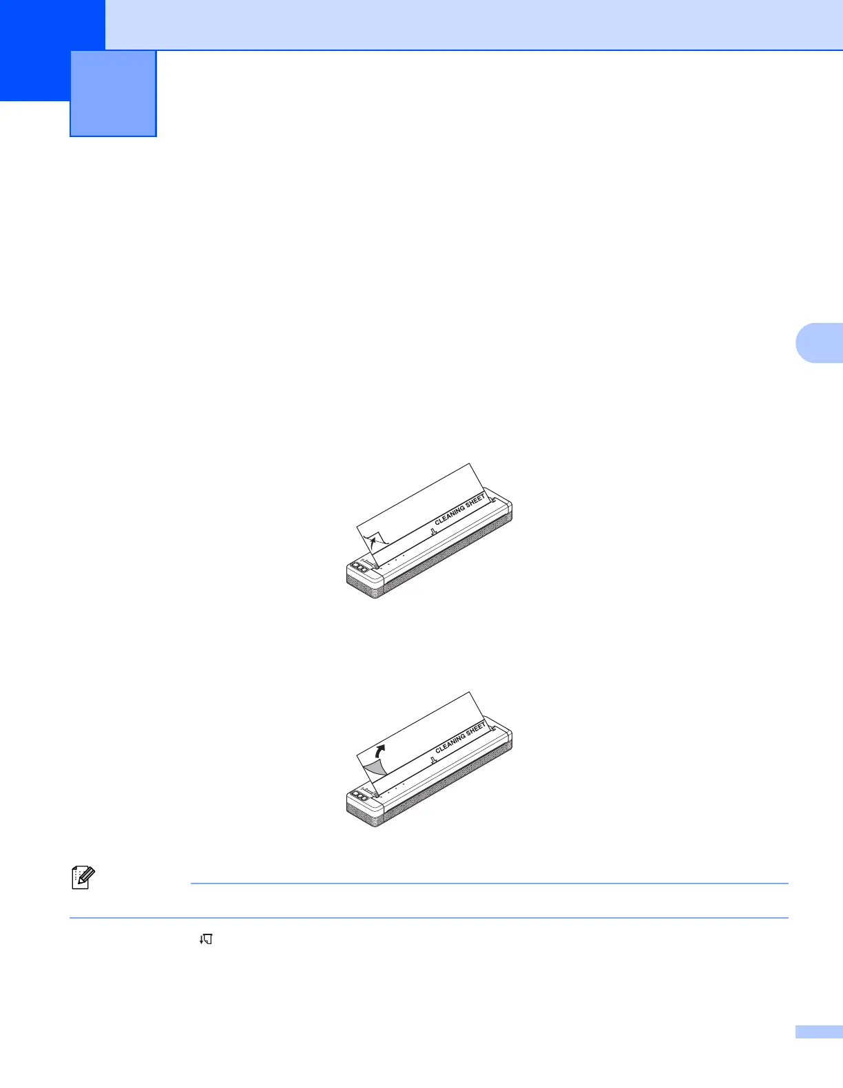 2 Plaats het reinigingsvel in de opening van de papierinvoer. De tekst "CLEANING SHEET" dient rechtop