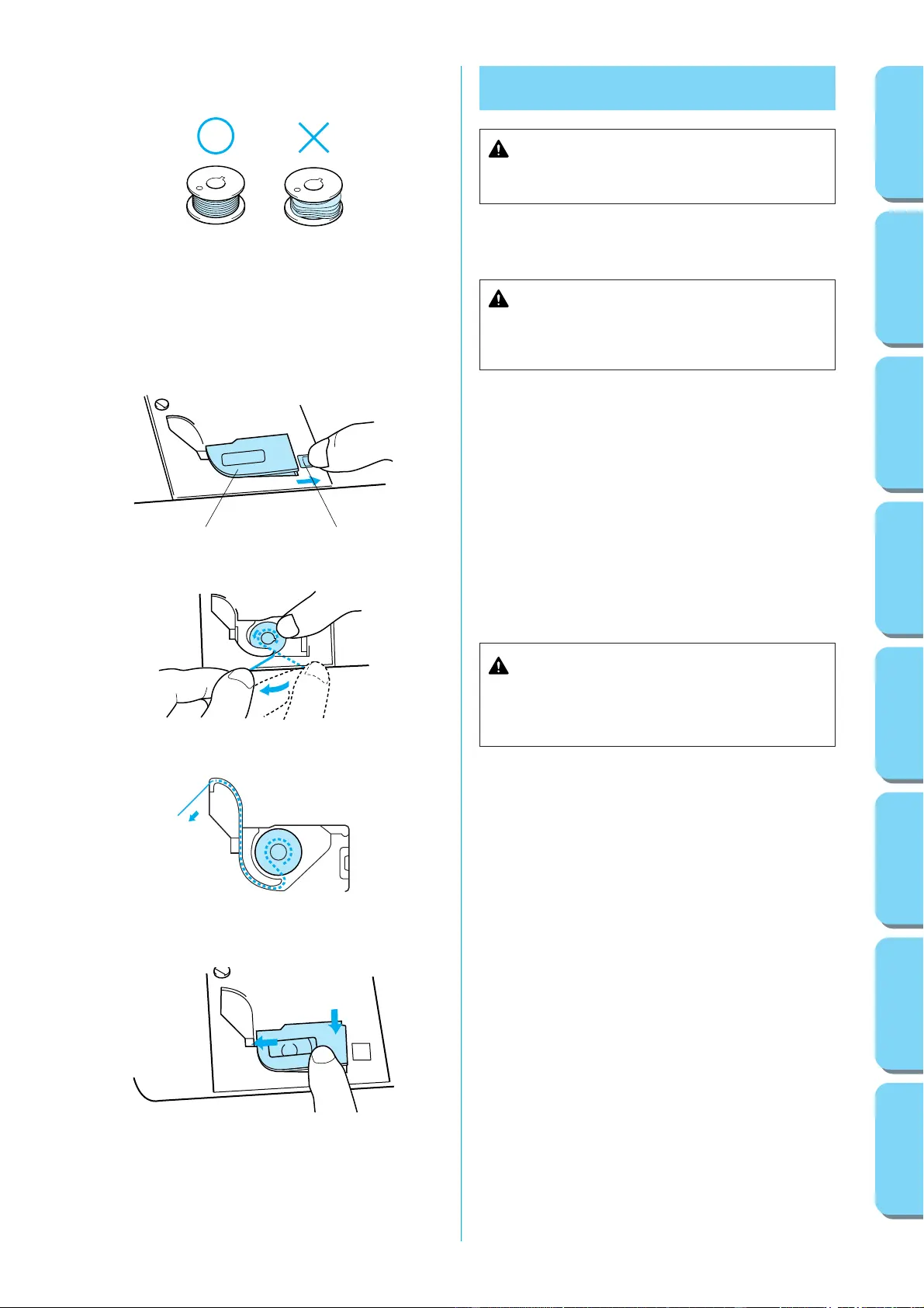 3. Insert bobbin and deliver thread end through the slit, then pull the