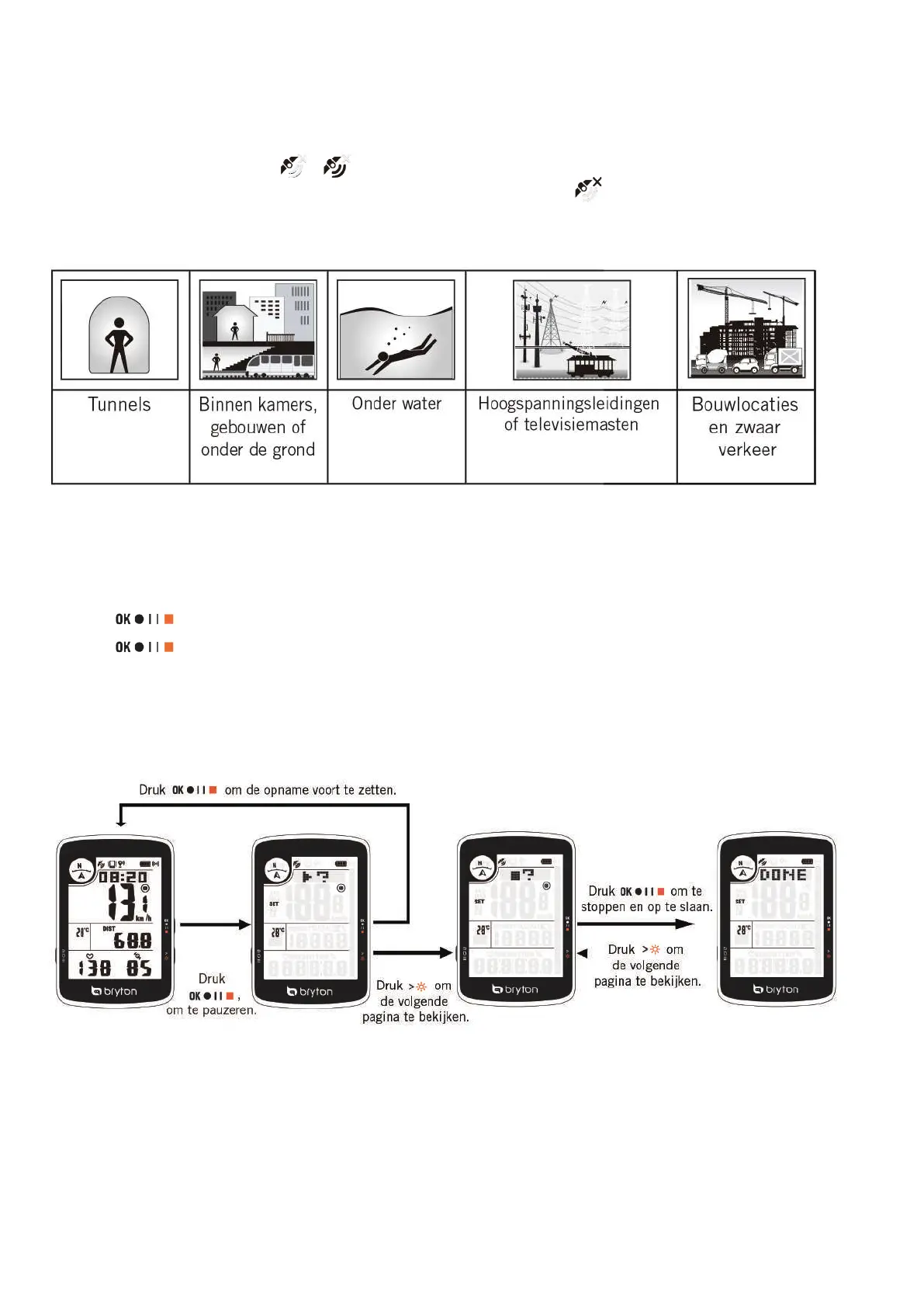 •Als het GPS-signaal niet is vastgelegd, verschijnt een pictogram op het scherm.