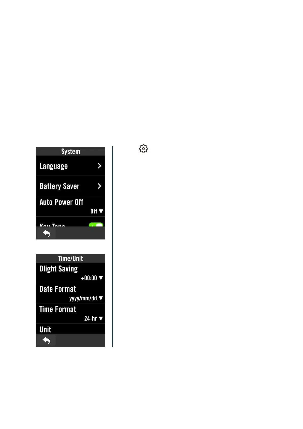 You can setup Language, Backlight Duration, Meter Color Mode, Key Tone, Sound, Time/