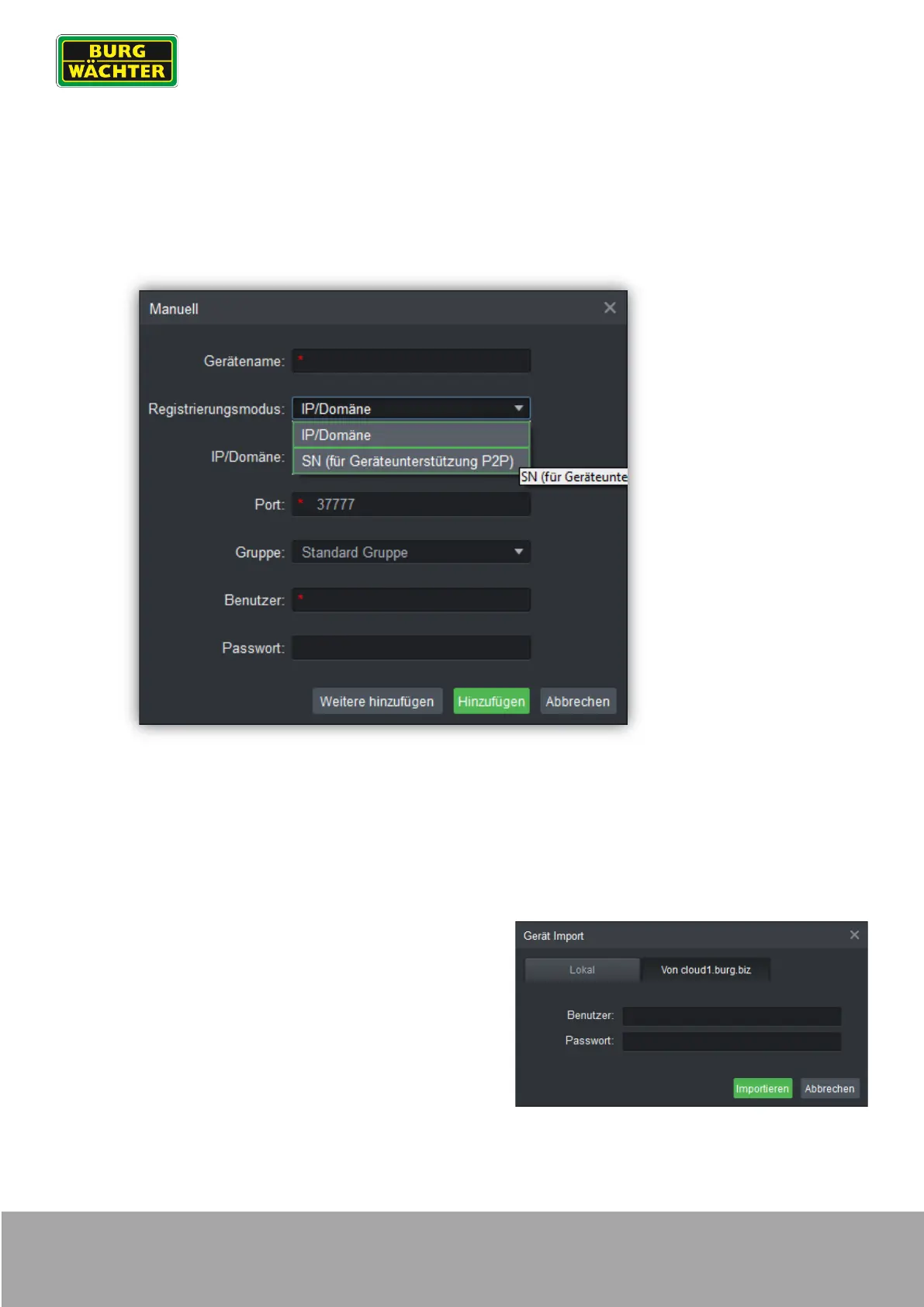 P2P Geräte oder Geräte über IP manuell hinzufügen