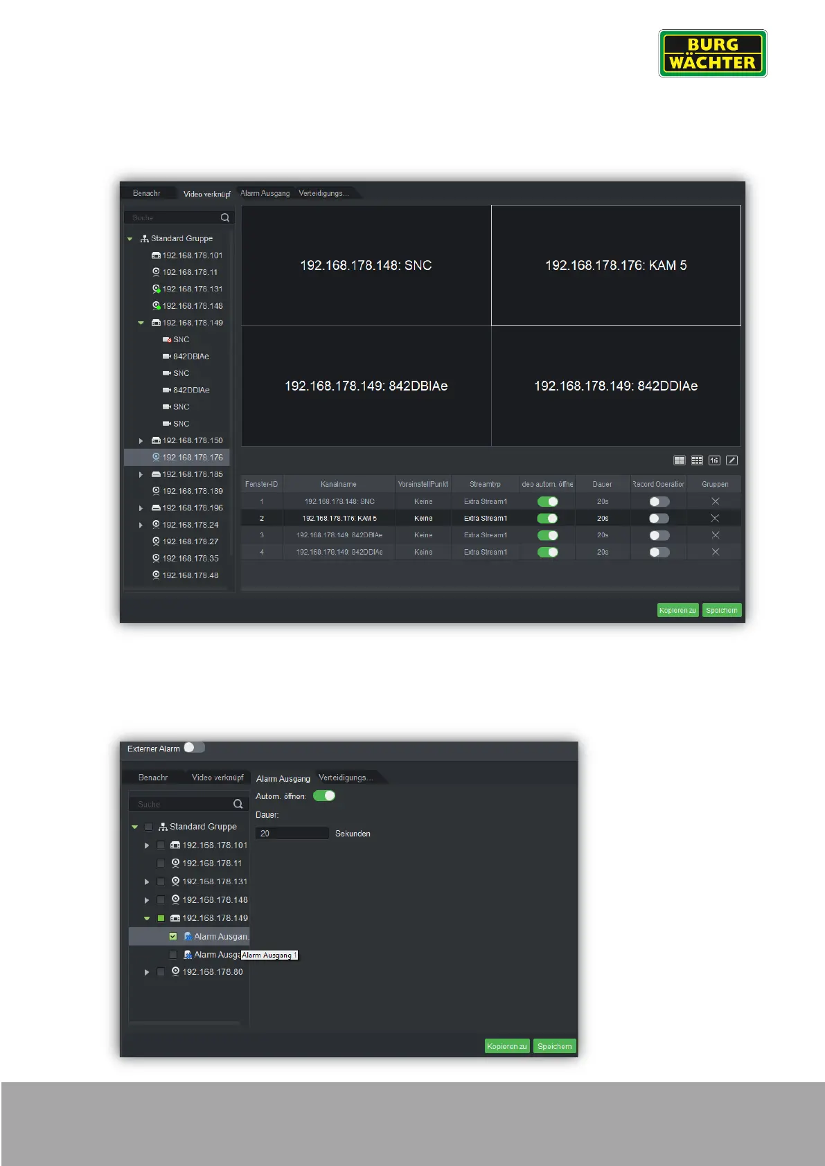 - Stellen Sie unter “Alarm Ausgang” ein welcher Alarmausgang, hier an einem zweiten Gerät,