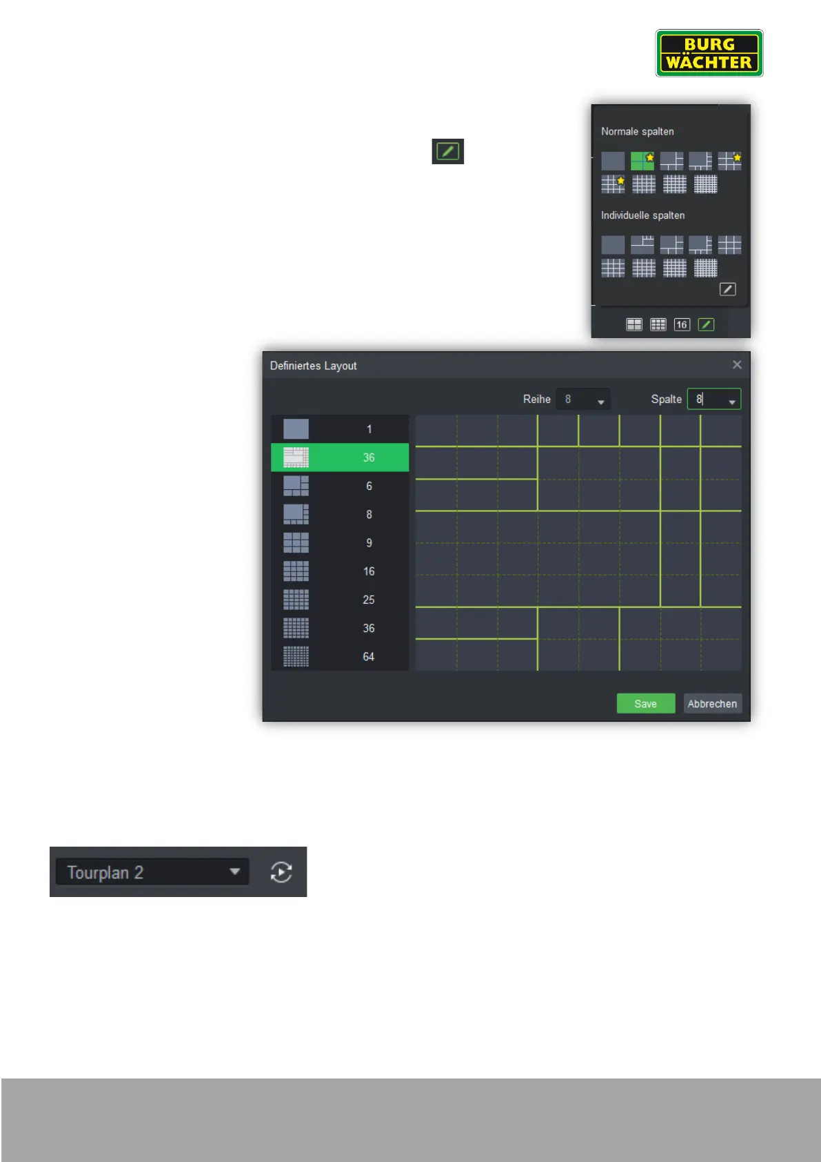 Wählen Sie den Tourplan in der Live-Ansicht (unten) aus und starten Sie diesen. Wenn Sie den