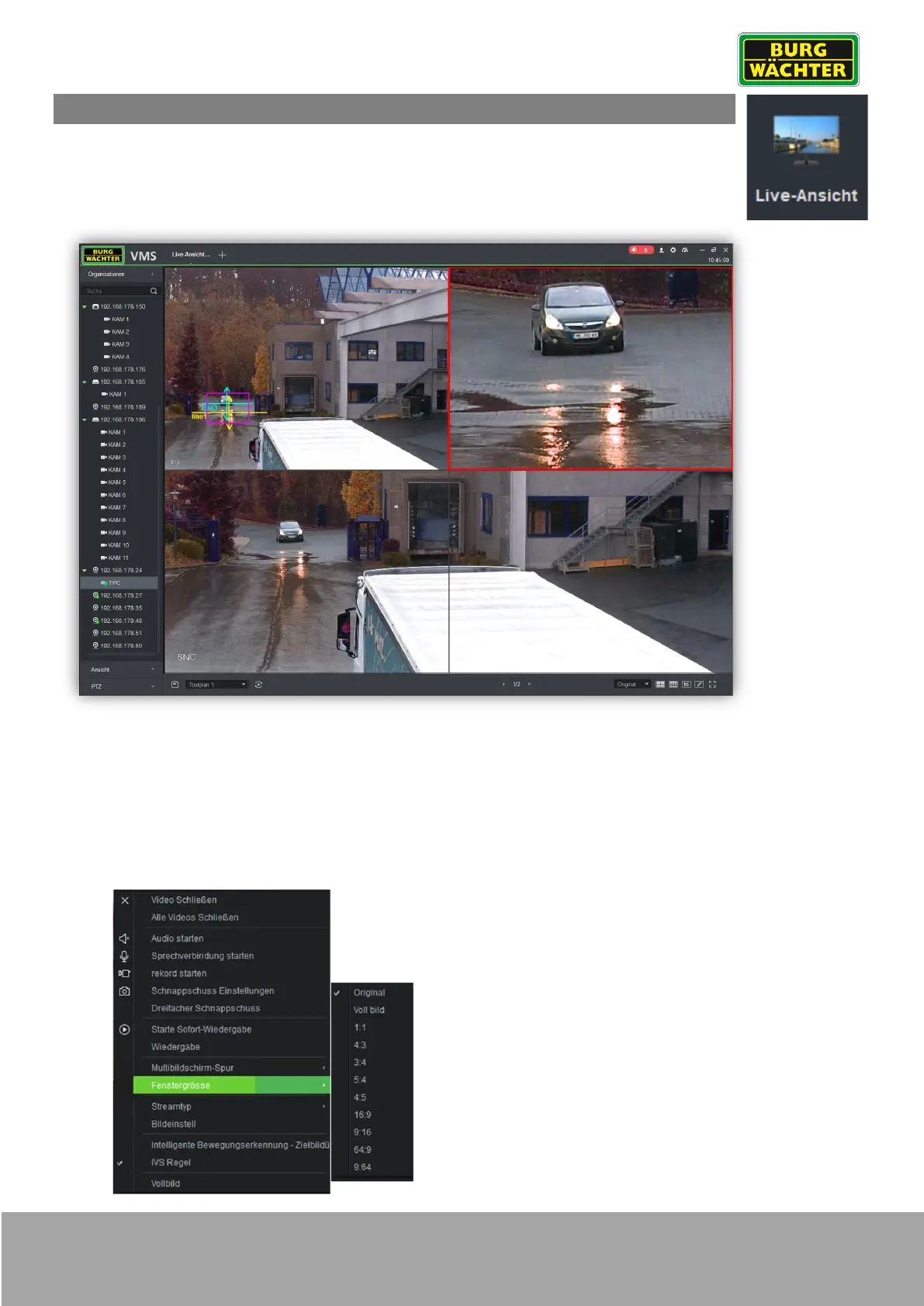In der Live Ansicht können Live-Streams von lokalen und Remote-Geräten