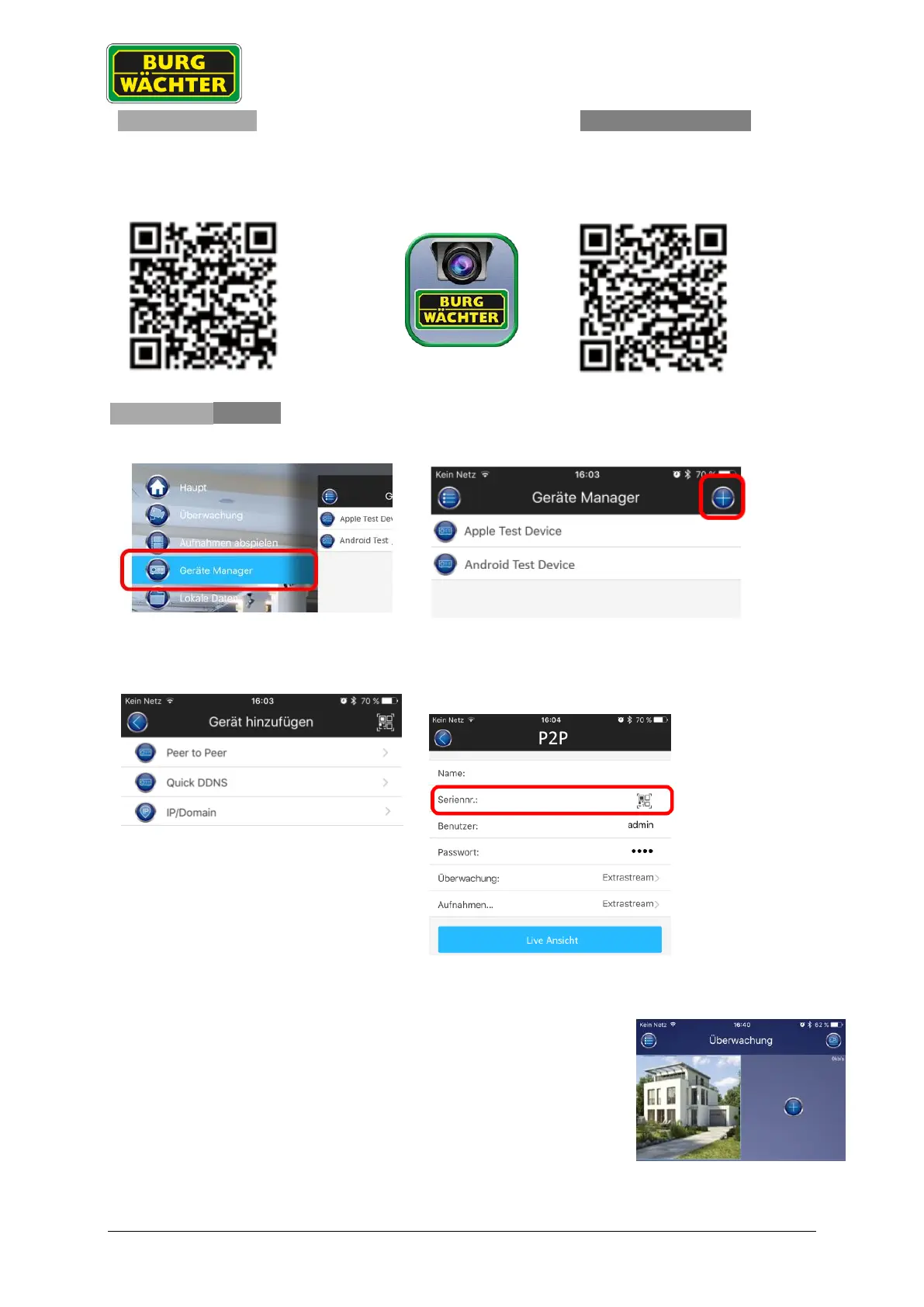 Hinweis: Die P2P Funktion muss in den Einstellungen der Kamera