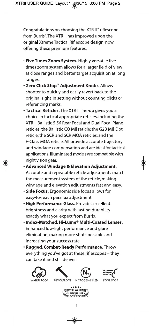 Bekijk gratis de handleiding van Burris XTR II, stel vragen en lees de antwoorden op veelvoorkomende problemen, of gebruik onze assistent om sneller informatie in de handleiding te vinden of uitleg te krijgen over specifieke functies.