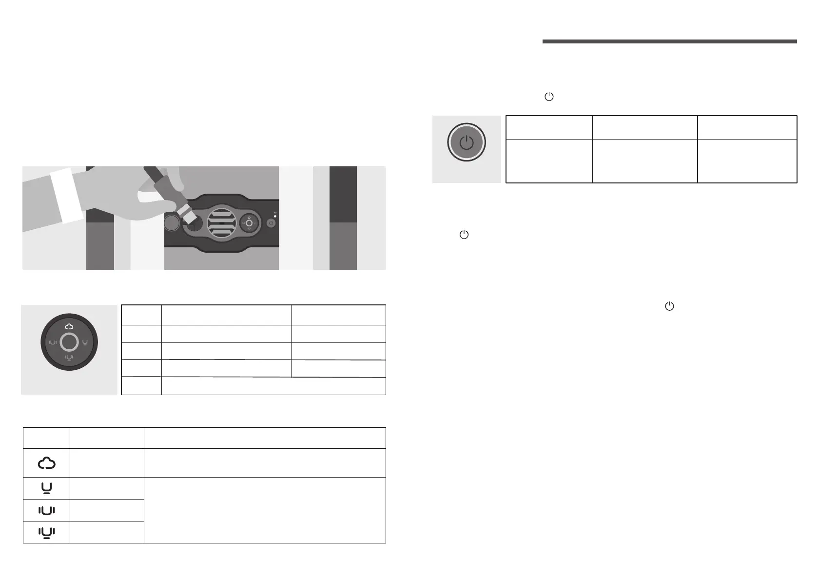 Press “ ” button to switch between and select the cleaning mode. When the Light Ring turns