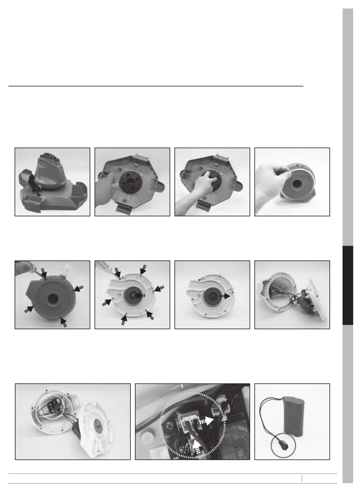 Fjern deretter alle skruene fra sokkelen som vist. Fjern løpehjulet og press opp sokkelen for å
