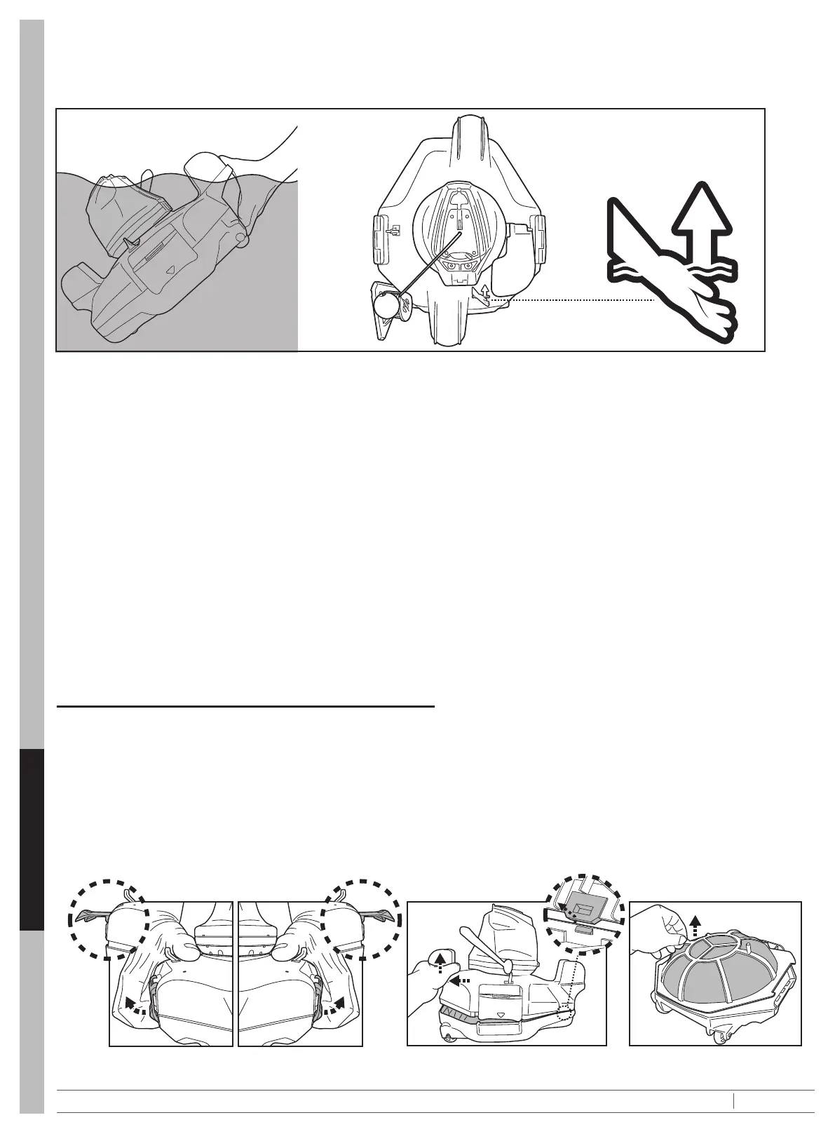 ( mit dem ausgeleerten Schmutzfach ) wieder ins Becken setzen, damit der Rest gereinigt werden kann.