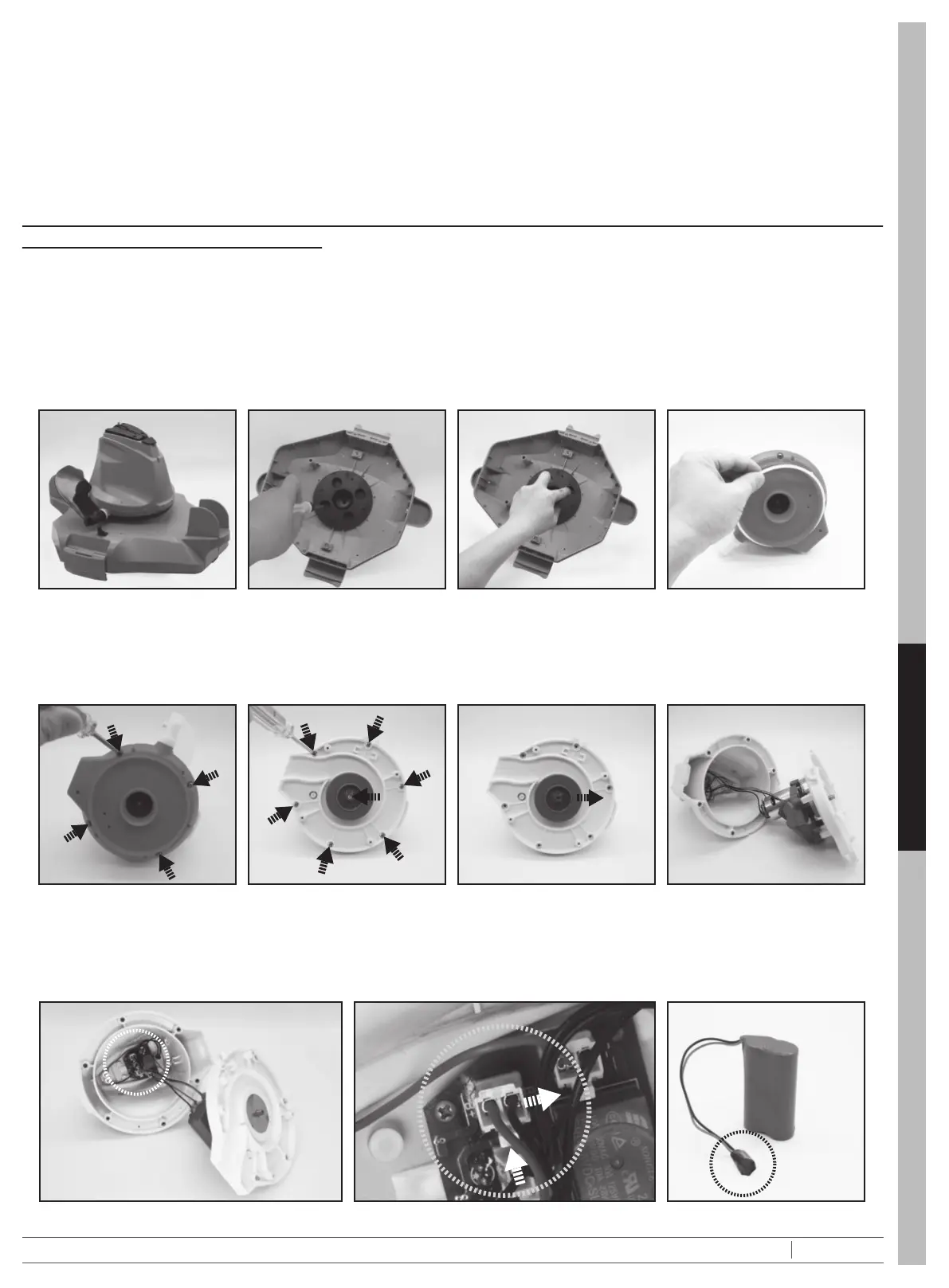 Utiliser un tournevis ( non fourni ) pour dévisser les 4 vis sur le couvercle supérieur de la tête pivotante. Défaire le nœud sur