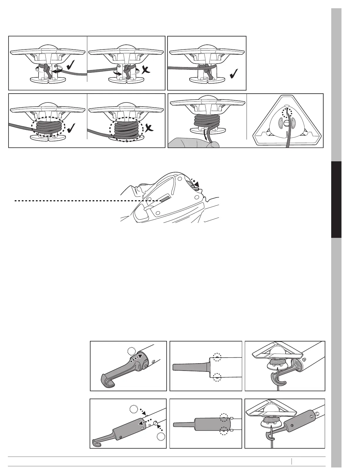 tud requerida ( paso 3 ). Tire de la cuerda hacia abajo en la ranura inferior e introdúzcala ( paso 4 ).