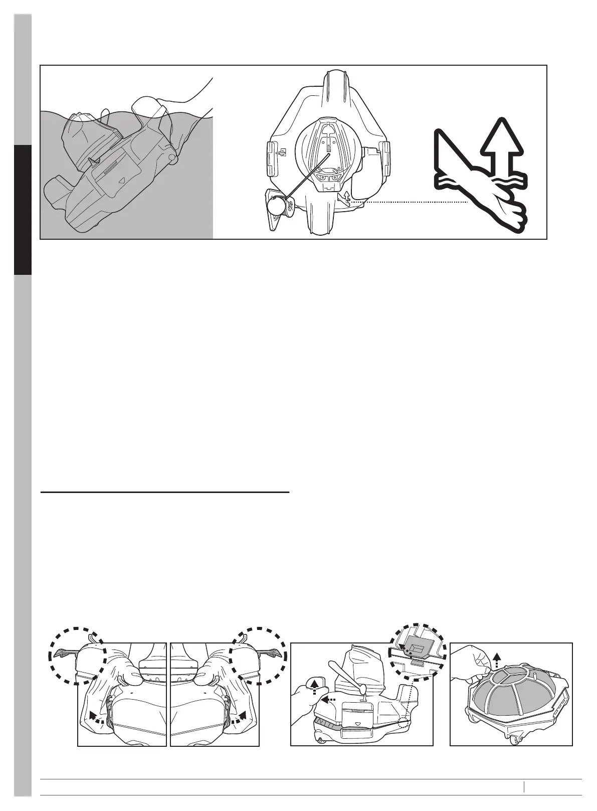 simbolo della mano ( vedere lo schema seguente ) per facilitare il recupero dalla piscina. Assicurati di afferrare sempre il robot