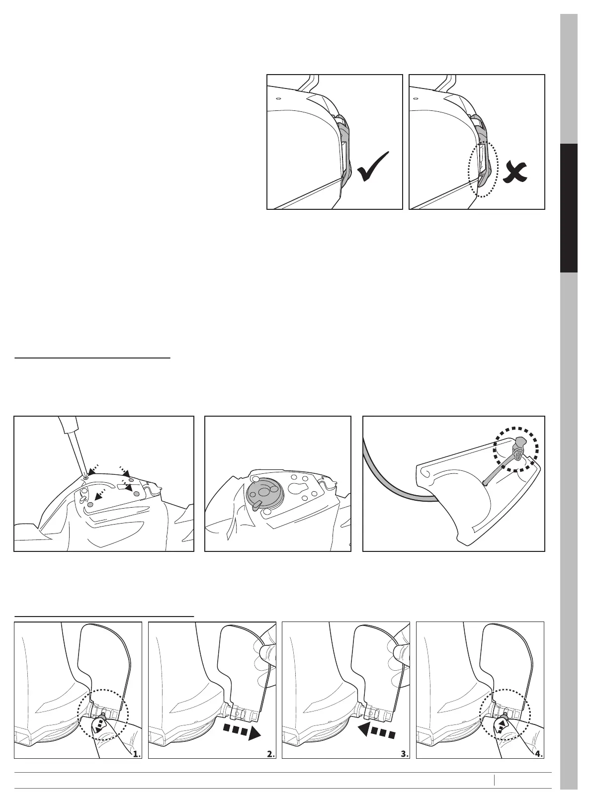 - Sostituire il linguetta laterale danneggiato immediatamente e prima di iniziare l’operazione successiva.