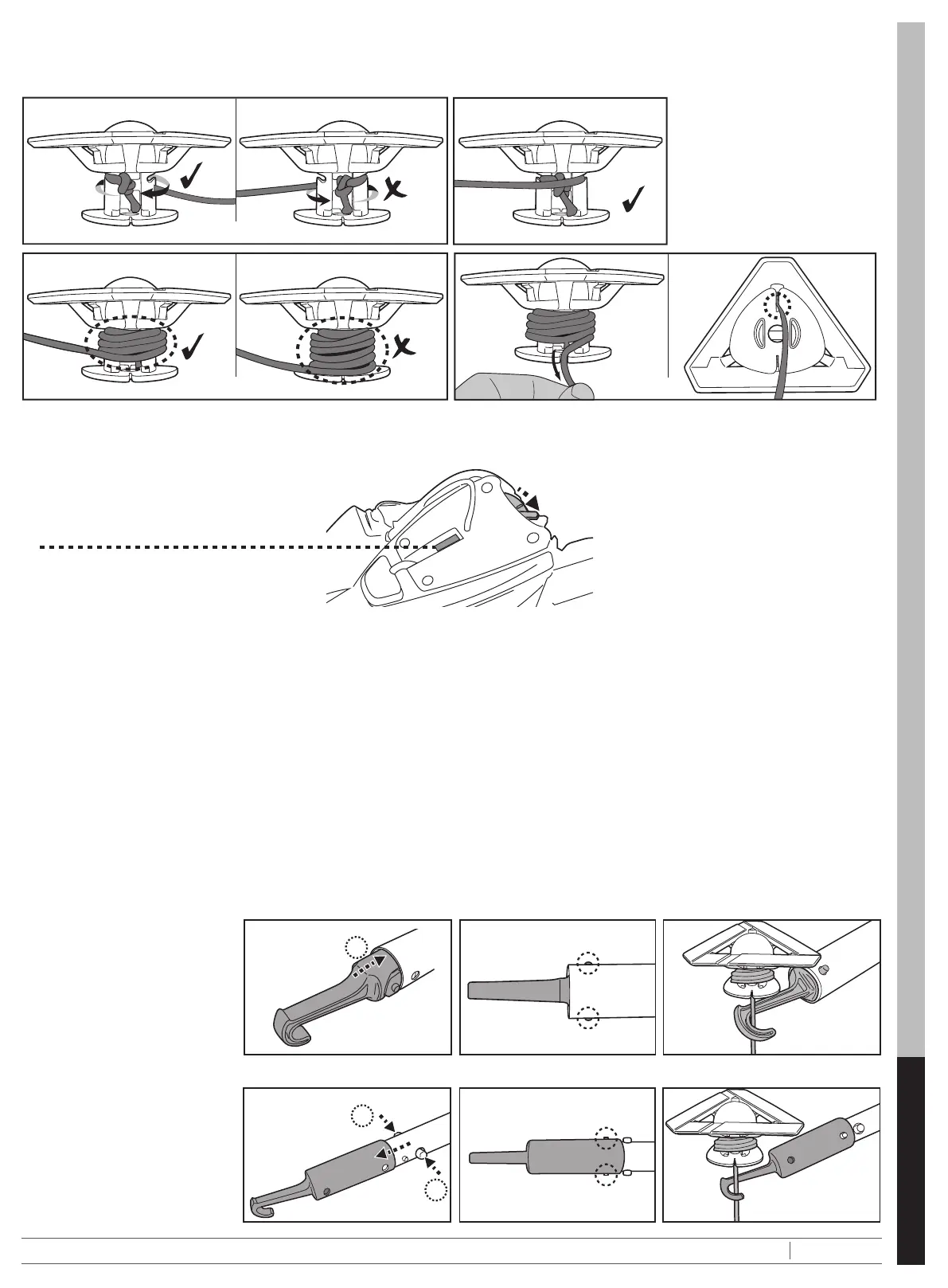 First, align and attach the retrieval cord to the side notches at the top as you wrap the cord around the stem ( step 1 & 2 ).