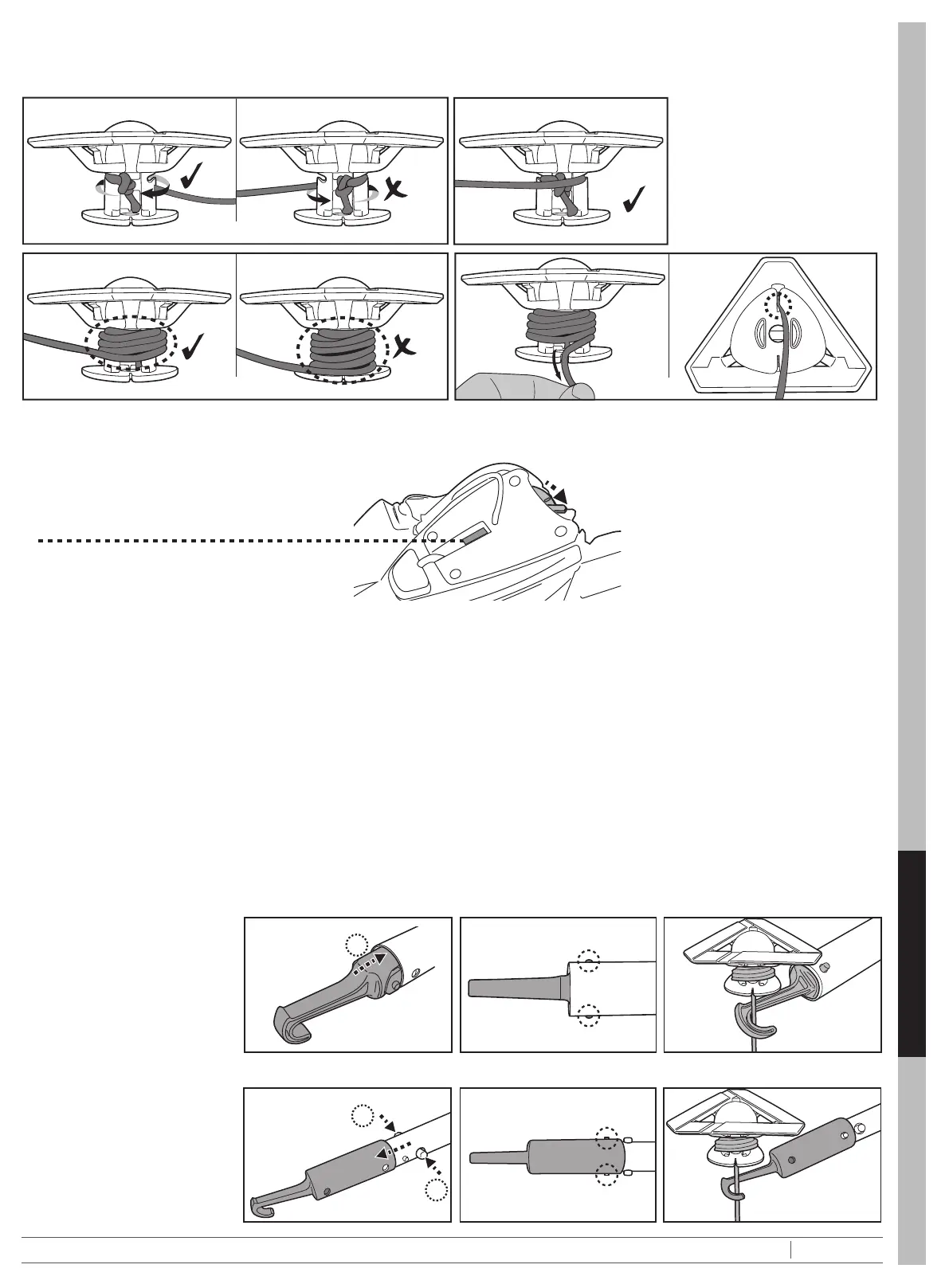 Kierrä lankaa säätörullan yläosan ympärille, kunnes se on vaaditun pituinen ( vaihe 3 ). Vedä lanka alas rakoon ja työnnä se