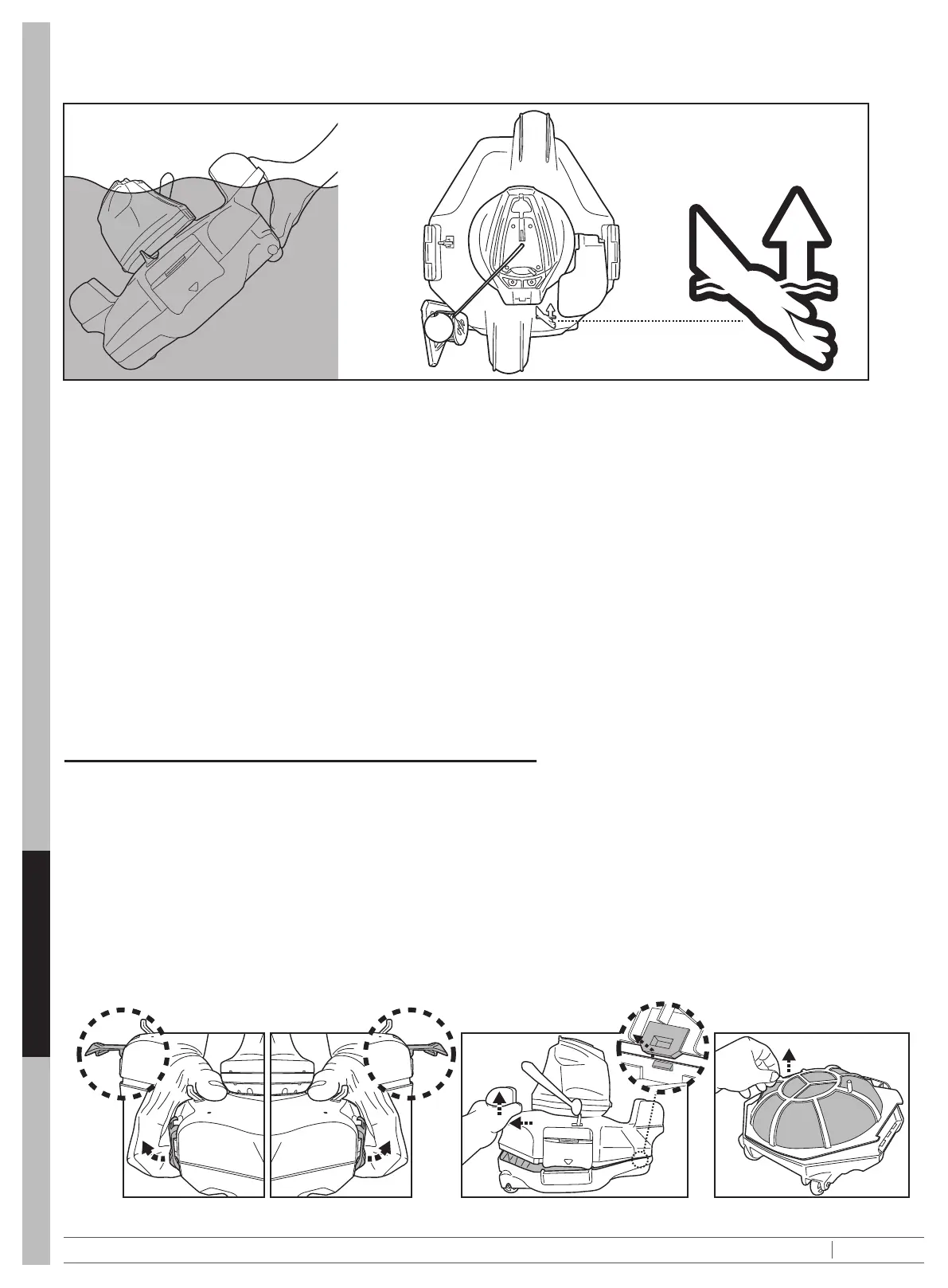 tamaan laitteen poistamista altaasta. Pidä aina kiinni robotista tästä päästä, jotta roskat eivät putoa takaisin altaaseen laitteen